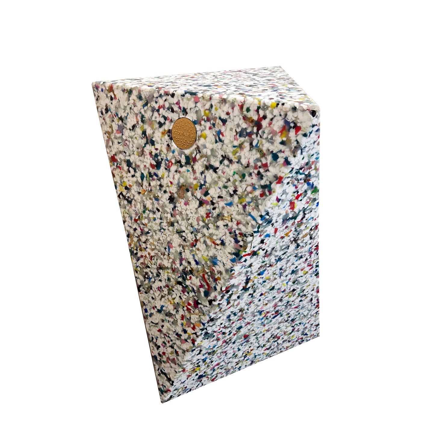 ECOPIXEL is a mono-polymer recycled/regenerated thermoplastic. Derived from pre-consumer waste material. It comes in 3D moulded/shaped products (which request specific tooling) ànd/or sheets of various thickness and size. ECOPIXEL is a 100% Italian Production.ECOPIXEL comes in a range of colors and pixelated effects. Following availability of wastematerials in both color ànd typology. Due to specific production technique ECOPIXEL appears to be pixelated. Sometimes, in certain areas, due to material qualities and mixture of different atches of waste-streams colorwaves may exist.